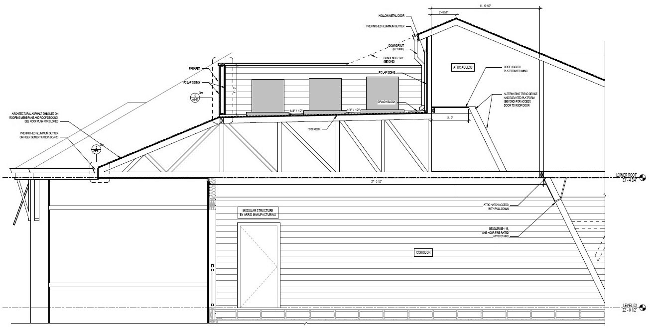 I was part of the design team responsible for the envelope design for exterior finishes, breezeway, stairs, roofing, and utility connections from the outside of the Modular Units to the site utilities. Building 3000 shall be Type V-A construction and Nelson Worldwide, LLC was responsible for the envelope design in coordination with site utilities. The actual area for Building 3000 is 13,354 GSF. Our team was responsible for designing the envelope of these modular unit projects in North Carolina, Florida, and Tennessee.