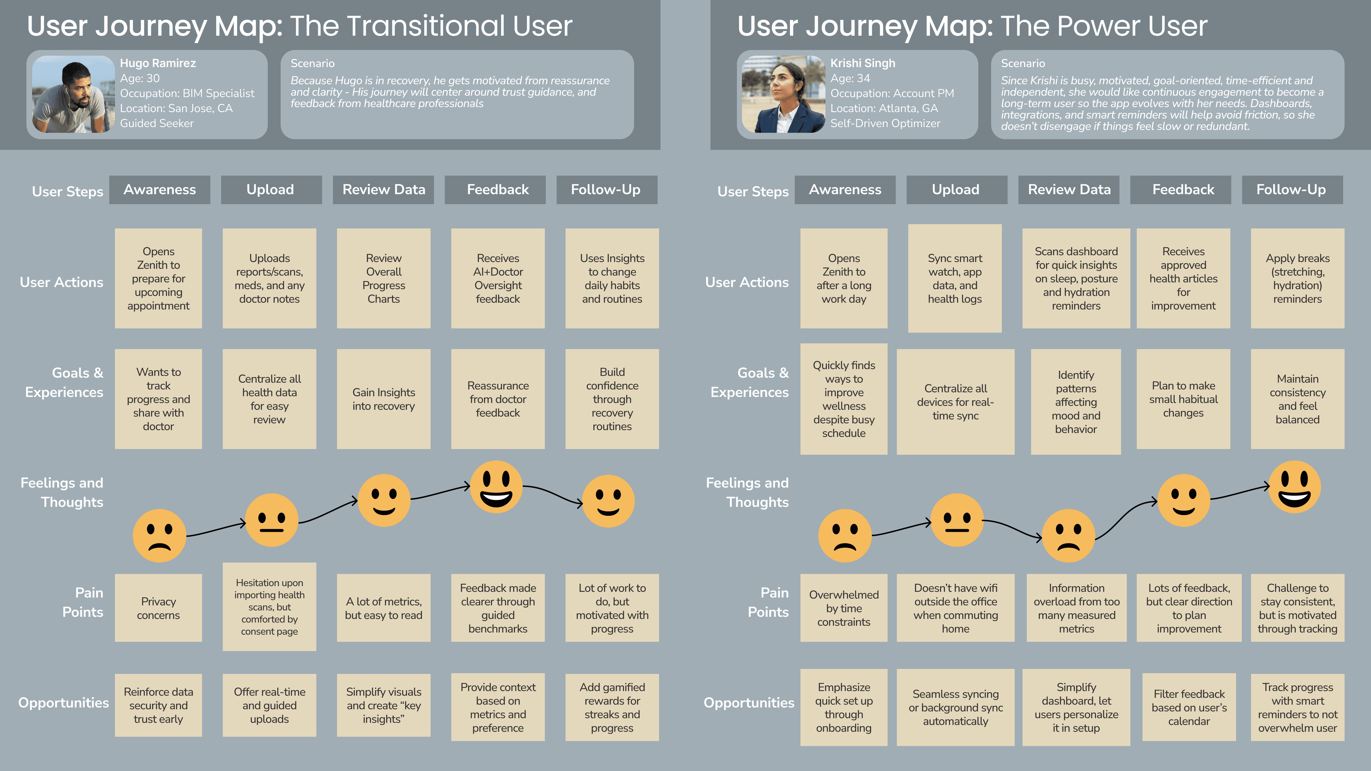 These journeys helped me understand not just what Hugo and Krishi want, but why certain moments are stressful or motivating. This insight became the foundation for the user flows I designed next.