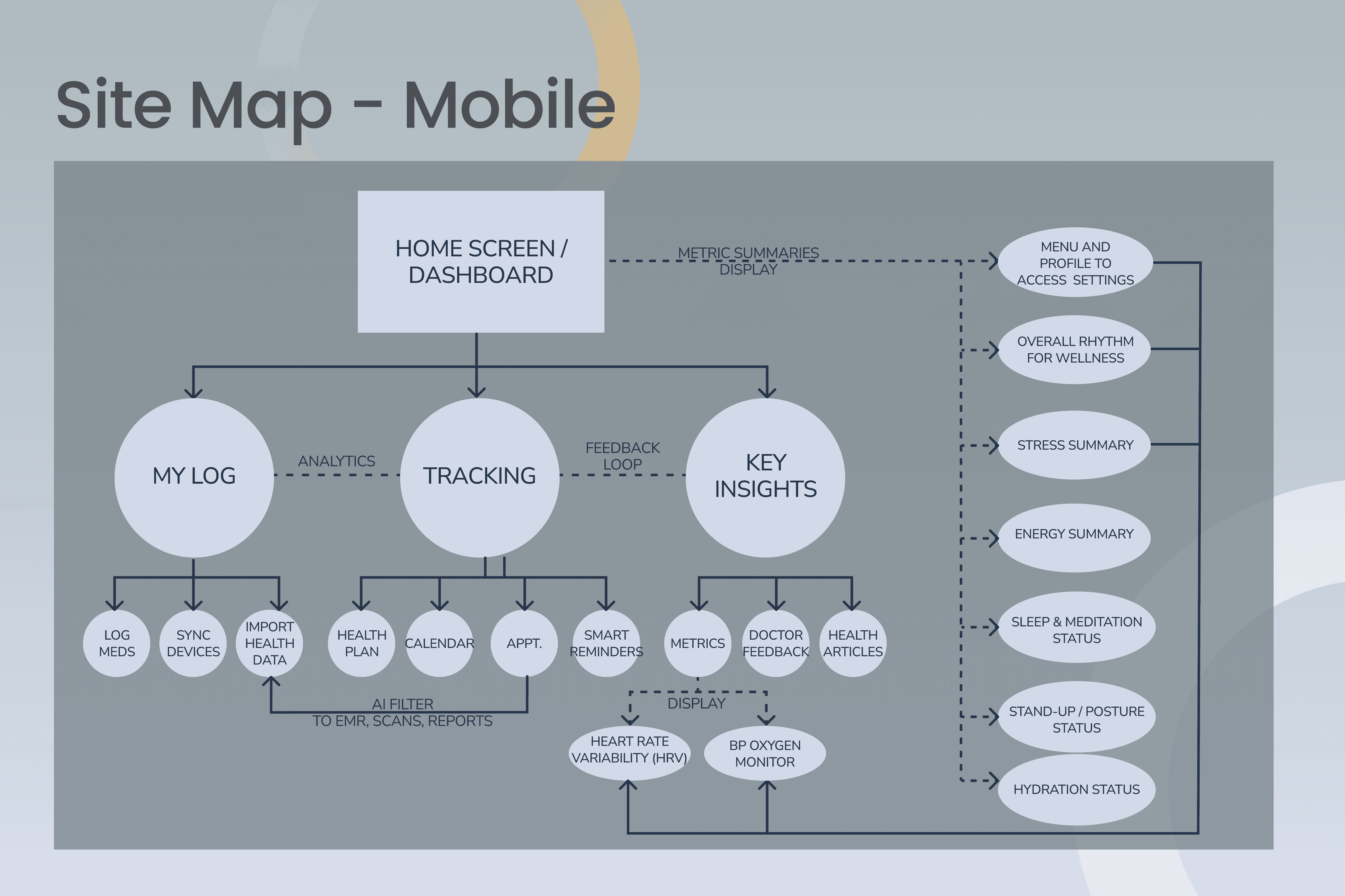 Initial Information Architecture (IA) utilized clinical terms like 'Sync' and 'Monitor.' However, card sorting indicated that users preferred more outcome-oriented language. I pivoted the taxonomy to 'My Log' and 'Tracking' to better align the system’s logical structure with the user's mental model.